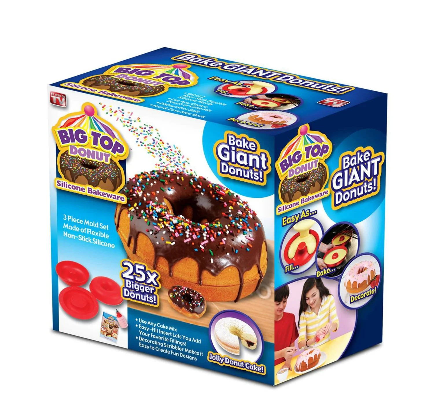 Next: la pièce de résistance! The GIANT donut cake! This was made by using a donut cake mold by BigTop. It took a little fiddling (and a couple "practice cakes" that my husband's co-workers benefited from), but I used boxed cake and icing- it's so easy and quite the show stopper!
