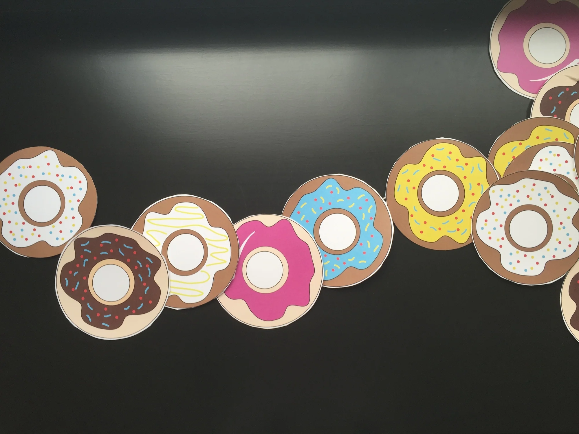 I made this DIY donut streamer to really cement the theme. I designed the donuts in Adobe InDesign and have made them available for FREE in .pdf format here! For best results, print them off on card stock.