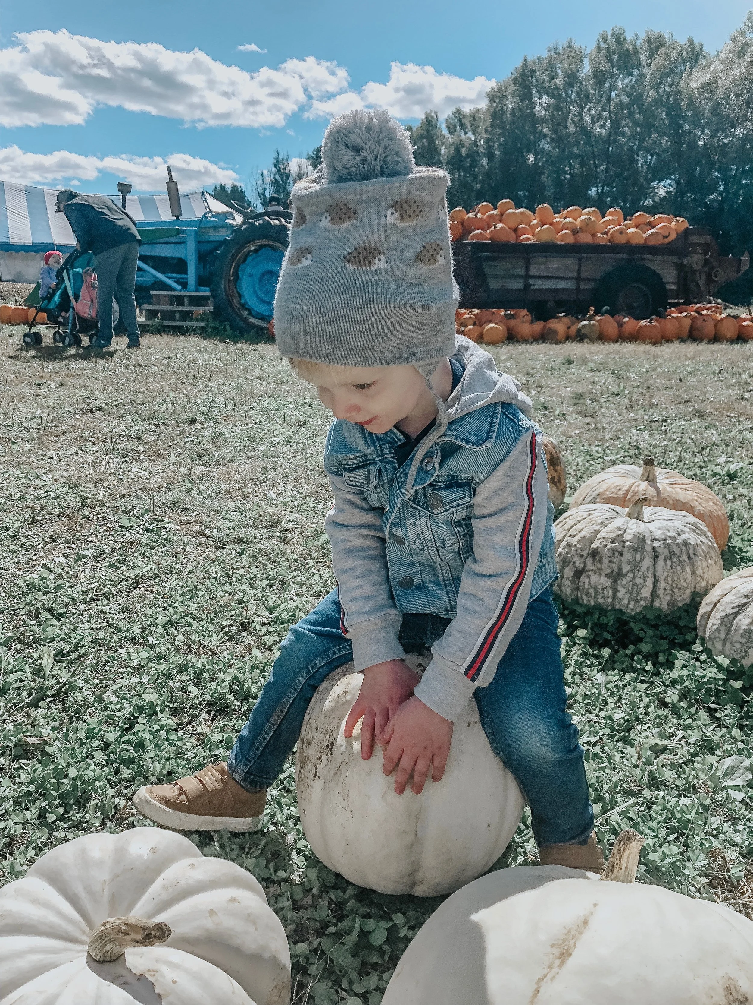 The following weekend we hit up Snyder’s Family Farm, with our good friends Jeff & Andrea [and their ADORABLE baby boy, Theo]. If you haven’t visited there, I highly recommend checking it out. In addition to the pumpkin patch, they offer hay rides, a petting zoo, a playground pirate ship, corn mazes, face painting, a jumping pad + a ton more of activities. They also have great places to eat such as a poutine food truck, BBQ truck, a British double-decker bus called the “Grilled Cheesery,” Hay Sugar, Candy Barn and a bakery. [By the way this post is #notsponsored, it’s just a really neat l̶i̶t̶t̶l̶e̶ pumpkin patch].