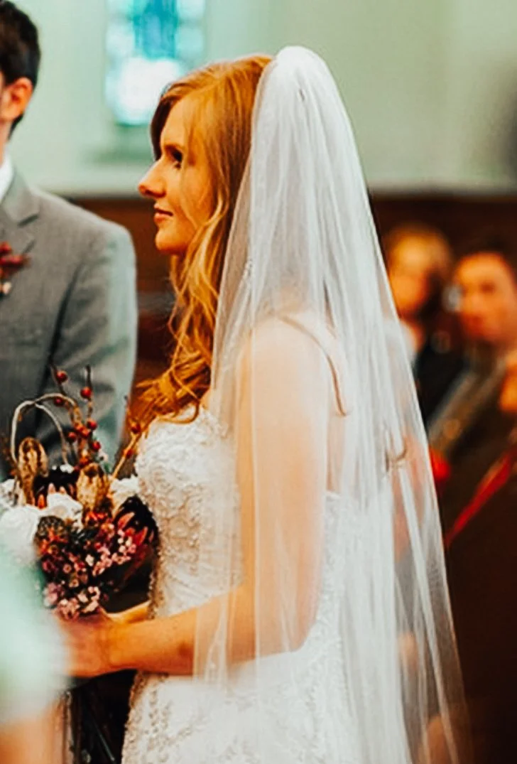 Somewhere among school photos of friends, handwritten cards, and random knick-knacks, I had tucked that torn magazine page into a little keepsake box. That box—and the ad—are long gone now, which made it feel so special to stumble across this image again by chance. It inspired me to wear my hair down with a long veil.